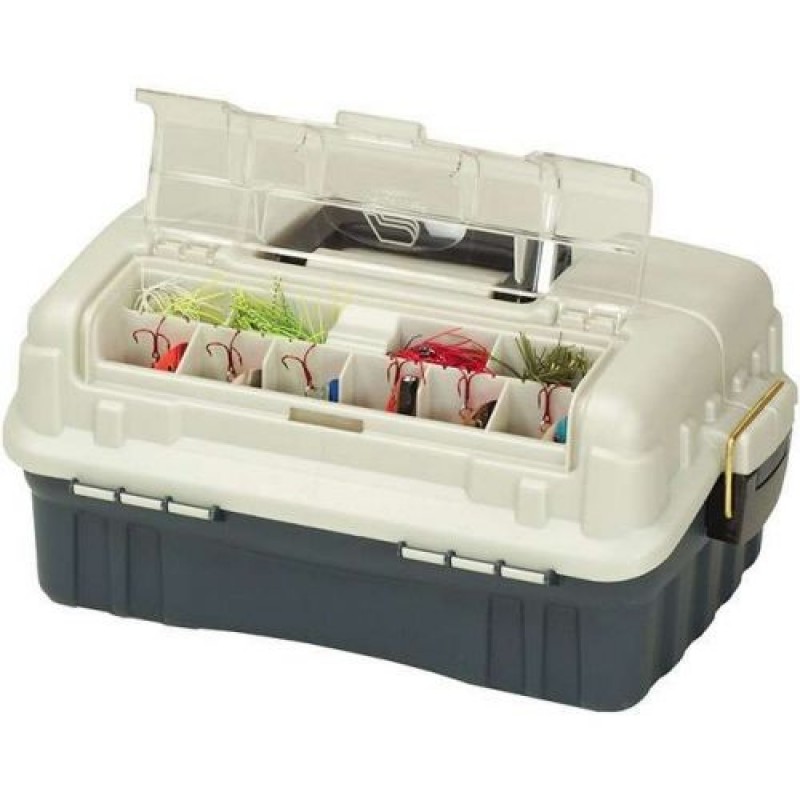 El Plano 7602 Flipsider es una caja de aparejos de dos bandejas con bandejas extra profundas y acceso de almacenamiento al compartimento superior.